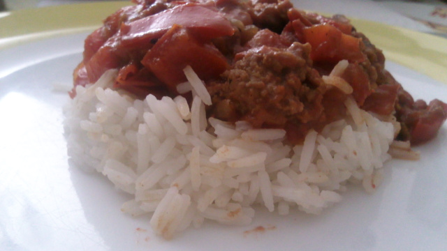 Munissez vous d'un bol, le remplir à 1/3 de préparation à la viande et tasser bien jusqu'au fond et finir le remplissage avec du riz.