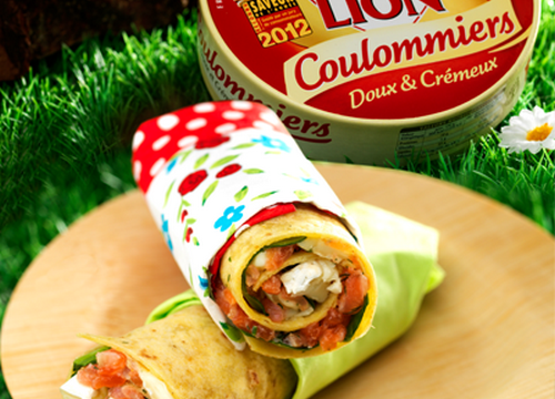 Montez les wraps : étalez les tortillas, disposez les feuilles d'épinards et répartissez le mélange saumon coulommiers en formant une ligne au centre. Roulez les tortillas afin de former un rouleau.