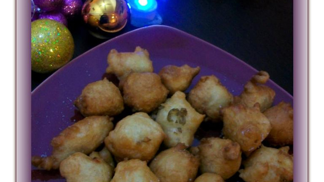 Faire chauffer l'huile dans une friteuse. Baigner d'eau une cuillère à soupe (petit truc pour que la pâte glisse facilement) et prendre une cuillerée de pâte. A l'aide d'une petite cuillère, (ou de l'index) faire glisser la boule de pâte dans l'huile bien chaude. Et ainsi de suite avec le reste de pâte. Les faire dorer des chaque côté à feu moyen.