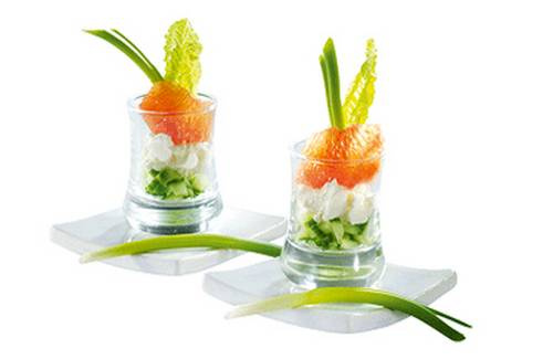 Dressez le concombre, puis le Philadelphia dans les verrines.