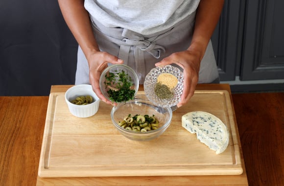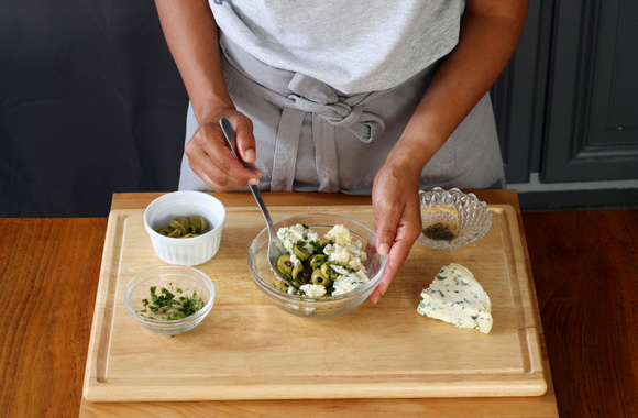 6Ajoutez la fourme d'Ambert en l'émiettant grossièrement.