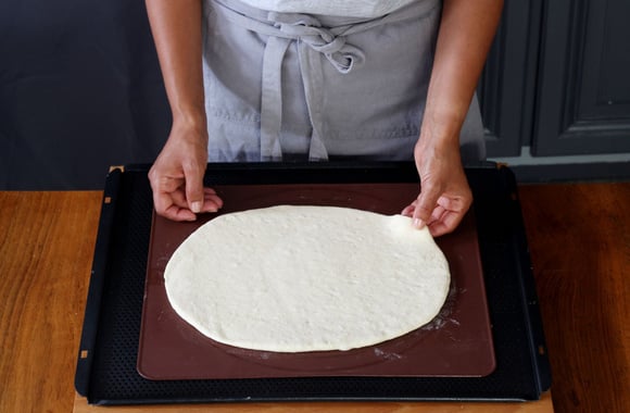 11Faites de même sur l'autre extrémité, afin d'obtenir une pizza ovale allongée.