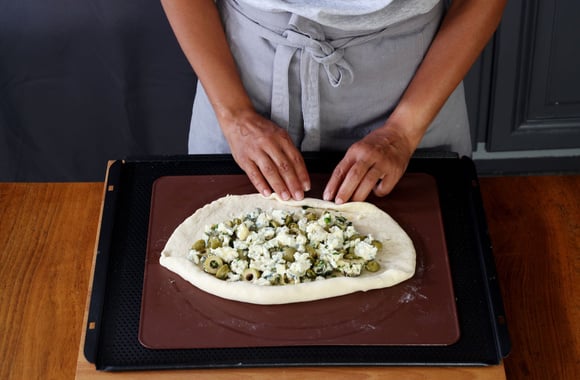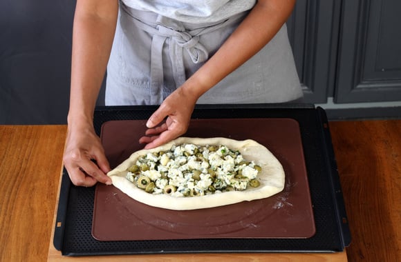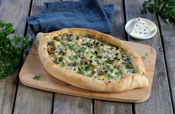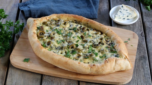 Une pizza typique de Turquie, ici en version à la Fourme d'Ambert ! La pide est idéale pour l'apéritif, pour le buffet d'un apéritif dînatoire et pour le pique-nique.