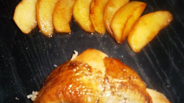 Après 50 min de cuisson ajouter les pommes à la pintade. Laisser cuire encore 10 min et servir avec une purée de pommes de terre.