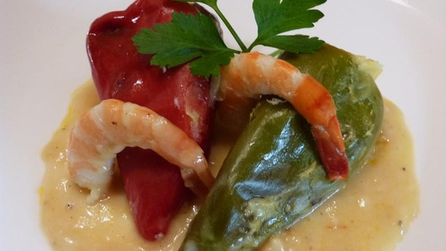 Ajouter la morue émiettée les gambas, le riz, le gingembre râpé, le persil ciselé et laisser cuire 5 min. Saler, poivrer. Farcir les piquillos de cette farce et les faire revenir quelques min dans une poêle avec un peu d'huile d'olive, puis les placer dans un plat allant au four.