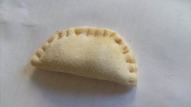 Etalez la pâte, faire des ronds avec l'aide d'un verre, déposer dans chaque rond de la farce coller les bords avec de l'eau et appuyer avec le dos d'une fourchette.
