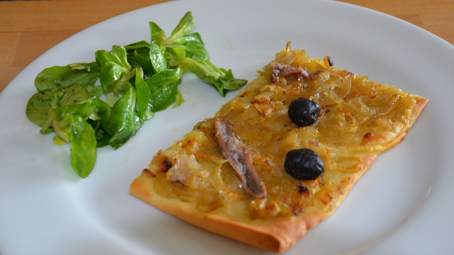 Préchauffer le four à 200°C (Th 6 / 7). Déposer votre compotée d'oignons sur votre pâte à pizza. Disposer harmonieusement vos anchois et les olives noires.