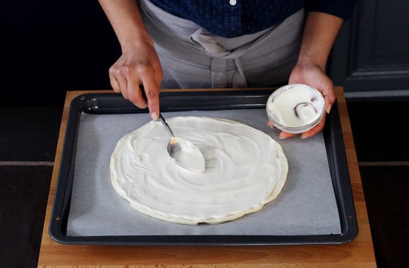 3Tartinez la pâte de crème épaisse avec le dos d’une cuillère.
