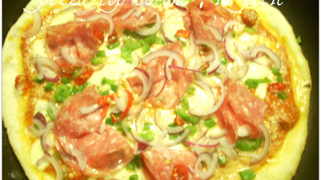 La garniture de cette pizza peut etre changée selon vos humeurs ! ne mettez pas une trop grosse couche de tomate pour que la pate ne soit pas trop mouillée. Pour une pizza de 30 cm de diametre.