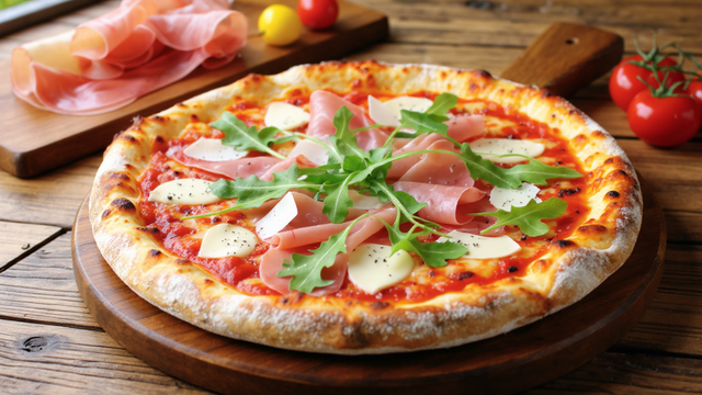 Laissez vous tenter par une spécialité italienne, la pizza au jambon de Parme et à la roquette.