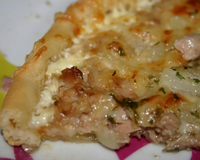 Dans un saladier, mélangez le thon, la moutarde, la crème fraîche et le gruyère. Etalez le tout sur la pâte feuilletée et enfournez th 6-8 pendant 35-40 minutes