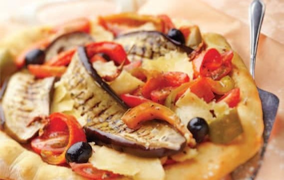 Méditerranéens grillés (aubergines, poivrons...), olives, tomates cerises Origan