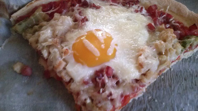 Je cherchais quelque chose à mettre sur ma pizza puis j'ai trouvé ça : pizza au œufs. Un vrai délice cette pizza :)