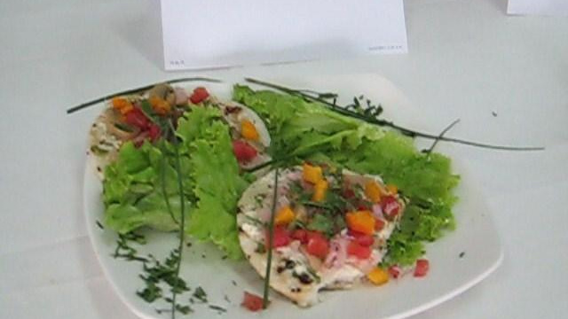A part, mettez les feuilles de salade verte sur une assiette. Étalez du fromage frais sur les galettes de maïs. Mettez tous les ingrédients sur les galettes de maïs. Salez, poivrez et parsemez du persil.