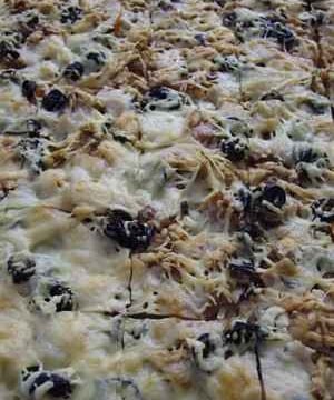 Disposez la pâte dans une plaque. Ajoutez les oignons et les lardons. Puis le fromage rapé par dessus. Mettez au four pendant environ 25 minutes. Servez chaud.