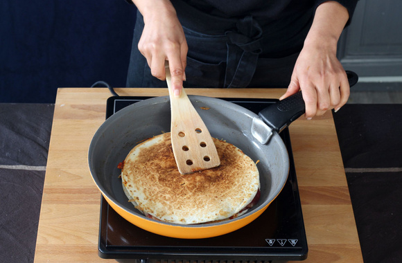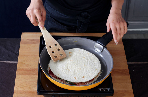 11Faites dorer les quesadillas dans une poêle antiadhésive 2 minutes d'un coté.