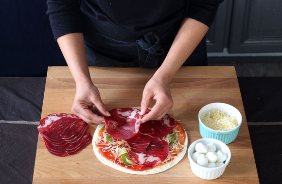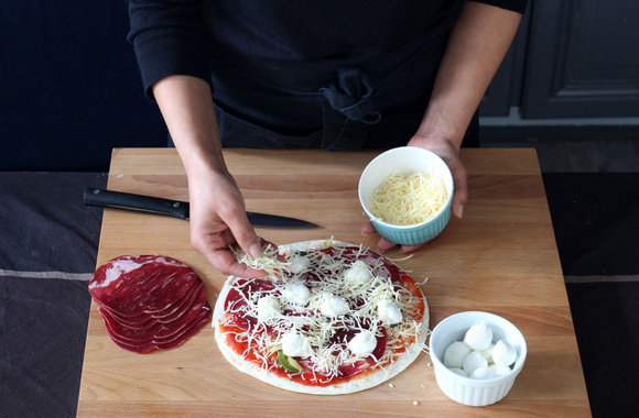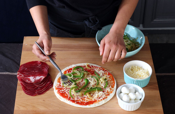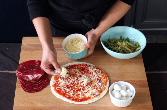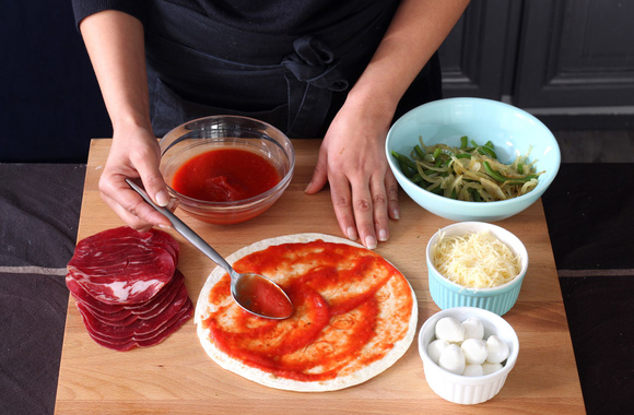 Quand l'Italie rencontre le Mexique ça donne.... la pizza-quesadillas ! Bien pratique quand on n'a pas de four sous la main...