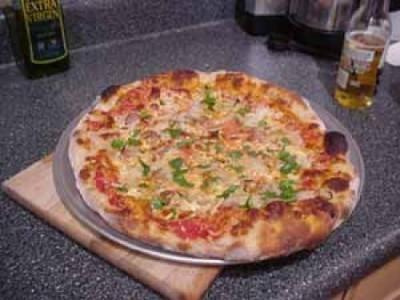 Préchauffez le four à thermostat 8 (240°C). Étalez la pâte à pizza sur une planche farinée, façonnez-la en forme de disque. Huilez une plaque à pâtisserie, déposez la pâte sur la plaque. Huilez légèrement la pâte, étalez la sauce tomate.