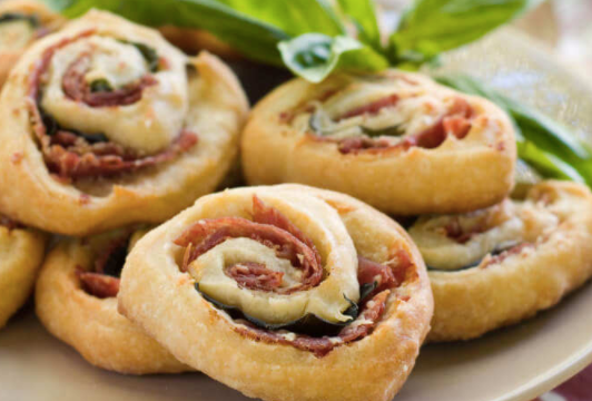Variez les recettes en changeant la garniture : remplacez le jambon par du saumon fumé ou simplement en étalant du Pesto. Veillez cependant à ne pas trop charger la pâte pizza pour qu’elle s’enroule facilement.