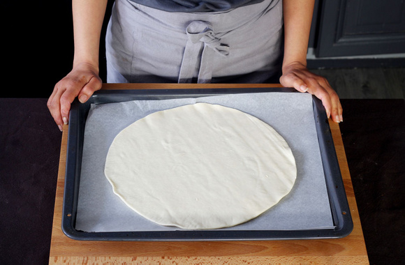 5Déposez le premier cercle de pâte sur une plaque recouverte de papier sulfurisé.