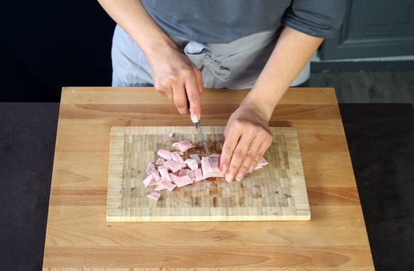 2Coupez le jambon en dés.