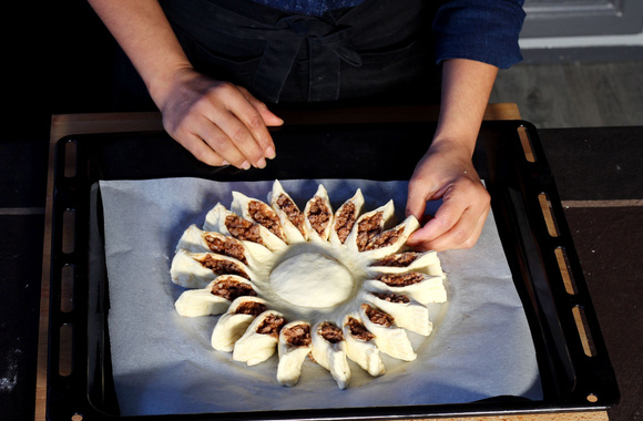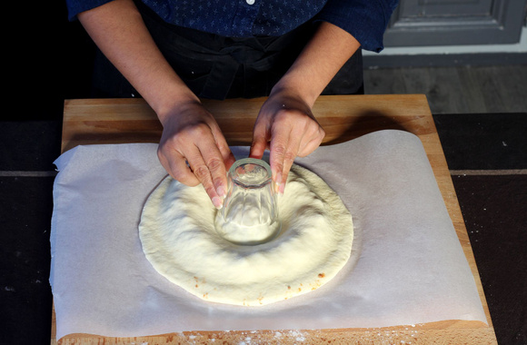 Déposez le premier cercle de pâte sur une plaque recouverte de papier sulfurisé.