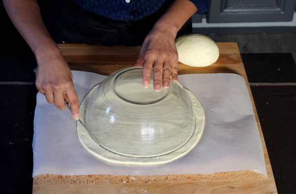 Découpez des cercles de 30 cm environ en vous aidant d'un saladier.