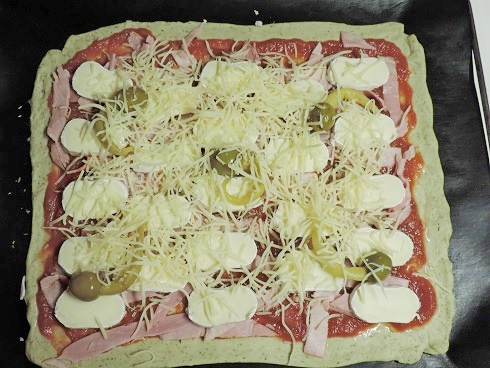 2Ajouter les olives et le fromage râpé. Enfourner dans un four préchauffé à 200°C pendant 10 à 15 min.