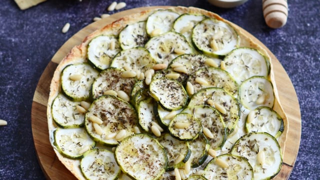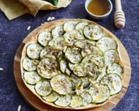Disposez les rondelles de courgettes sur le chèvre, en commençant par le cercle extérieur vers l'interieur.