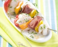 Conseils de Compagnons : Accompagnez ces brochettes dune ratatouille confite servie dans des verrines. Pour une note plus ensoleillée, remplacez le jambon cru par des tranches un peu épaisses de chorizo. Un délice pour les papilles !