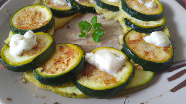 Détailler le fromage de chèvre en morceaux de 1,5 cm d'épaisseur et les disposer sur les courgettes. Parsemer de thym.