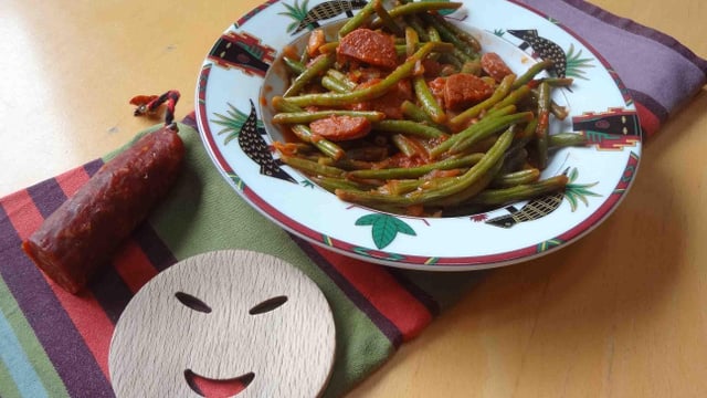 Ajouter les haricots verts égouttés, vérifier l'assaisonnement et servir bien chaud.