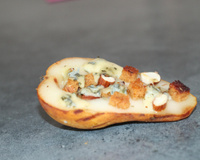 Poire chaude farcie au fromage.