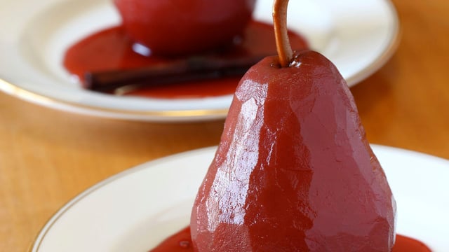 attention: ces poires pochées au vin rouge et aux épices qui réchauffent sont à consommer exclusivement au coin du feu (ou du radiateur pour faire semblant si on n'a pas de cheminée !)