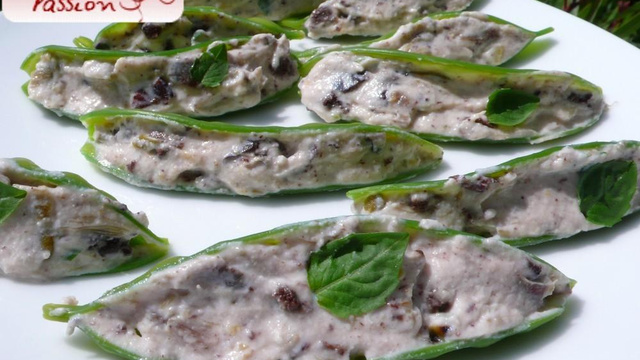 Recette ludique et saine de pois gourmands cuits al dente et farcis à servir froid, comme antipasti !