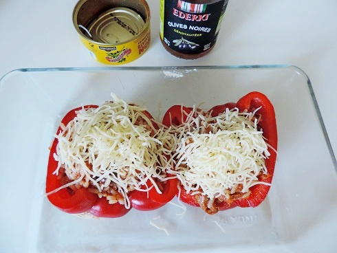 NB: Si besoin, couper finement la base extérieure des poivrons pour les faire tenir debout.