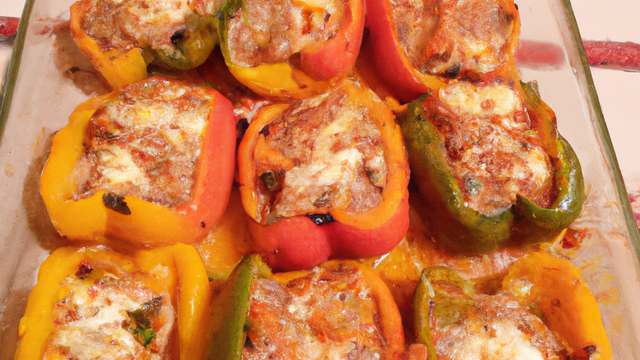 Farcir les poivrons avec la farce et passer le tout au four à 220°C pendant 1/2heure