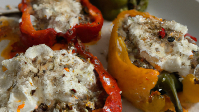 Farcir les poivrons et enfourner à 180°C durant plus ou moins 30 min.