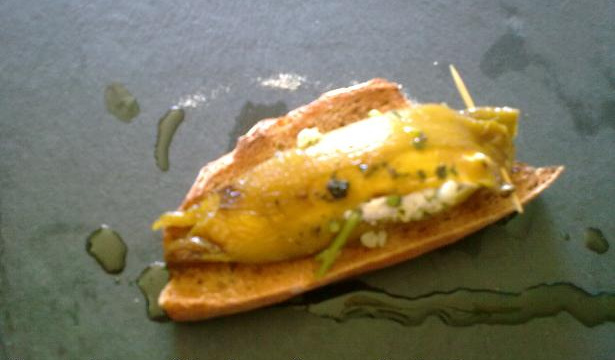 Dés qu'ils sont farcis installer les poivrons dans une terrine, recouvrir généreusement d'huile d'olive, parsemer d'herbes de Provence ou d'herbes fraîche et conserver au minimum une heure au frais avant de déguster sur une tranche de pain de campagne grillé.