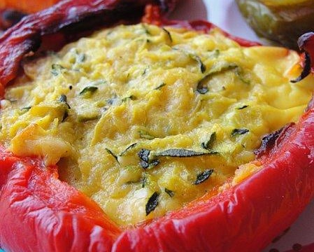Placez vos poivrons dans un plat à gratin, et remplissez-les de la garniture. Vérifiez-bien que vos poivrons ne soient pas percés !
