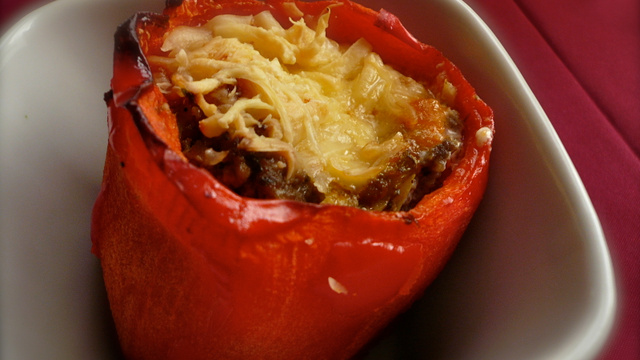 Garnir les six poivrons avec cette préparation. Répartissez le gruyère sur les six poivrons calés dans un plat à feu. Enfournez pendant une vingtaine de minutes.