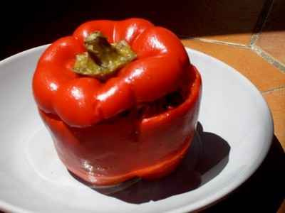 Les poivrons seront cuits après 30 minutes de cuisson. Vous pouvez servir accompagné de riz en ajoutant la sauce qui a cuit à l'intérieur des poivrons.