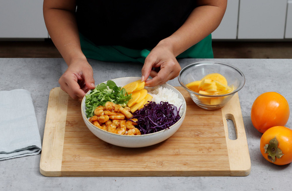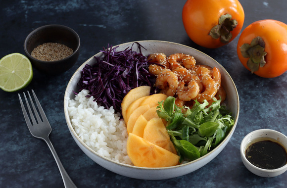 Un plat complet original et dans l'air du temps, pour déguster les Kakis Ribera del Xúquer AOP en version salée.