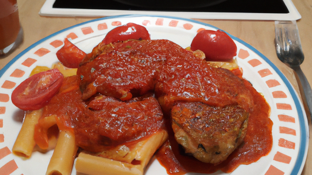 Servez la viande découpée en tranches avec les pâtes et la sauce tomate.