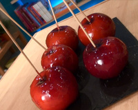 - 1Insérez des bâtons de bois au 3 / 4 dans l'extrémité de la tige de chaque pomme.Placer les pommes sur une plaque de four recouverte de papier d'aluminium légèrement huilée.