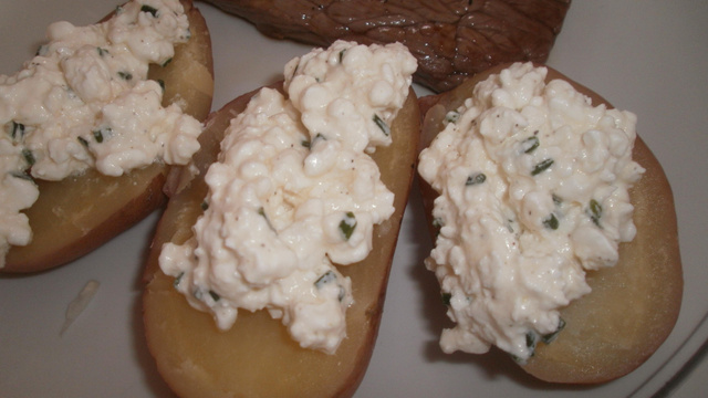 Une fois cuites, coupez les pommes de terre en 2 et poser de la sauce sur les pommes de terre, poivrez (facultatif).