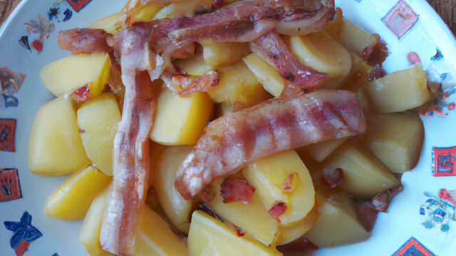 Je commence par coupé les pommes de terres dans un saladier. Je met ensuite un peu d'astra ou de beurre avec les p. de terre dans une poêle. remuer assez souvent pour qu'elle ne brûle pas. une fois qu'elle sont doré nous passons aux lardons.