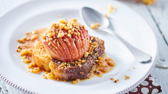 Déposer une demi-pomme sur chaque part de Moelleux.