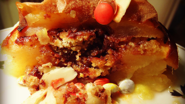 Une pomme au four délicieusement sucrée par le goût tendre du Balisto miel et amandes.