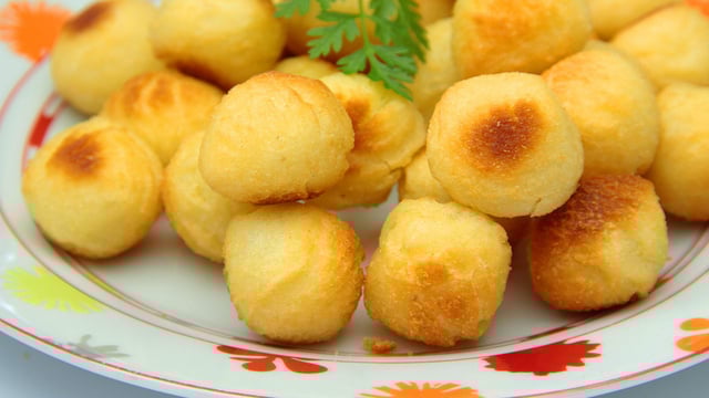 Mélanger intimement pâte à choux et purée et former des boules soit à la cuillère, soit à la poche à douille et passer en friture à 160 / 170° maximum.